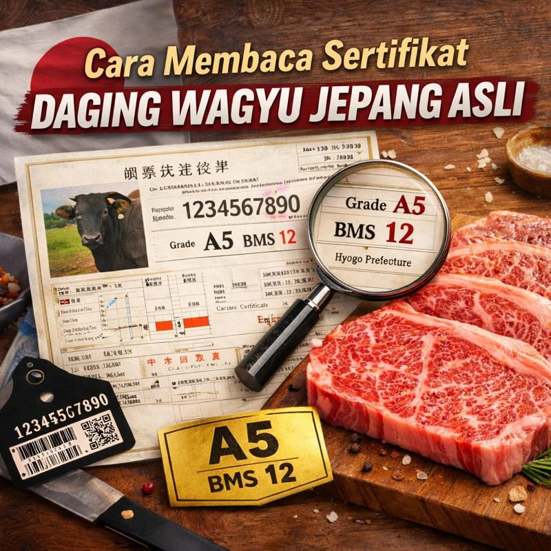 Panduan lengkap membaca sertifikat Daging Wagyu Jepang asli, mulai dari grade, BMS, hingga cara verifikasi keaslian secara akurat.
