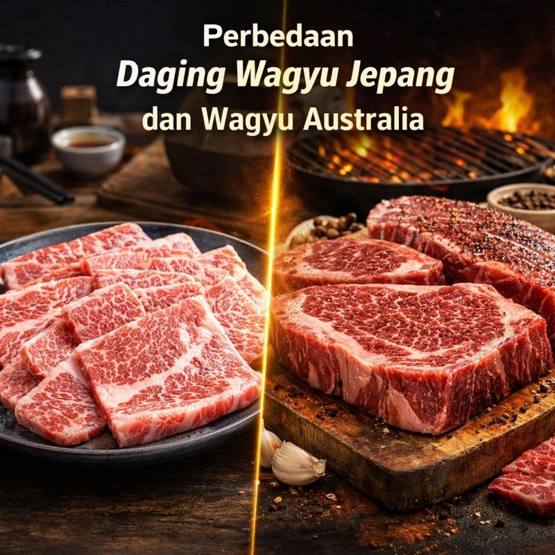Ulasan lengkap perbedaan Daging Wagyu Jepang dan Wagyu Australia dari marbling, rasa, harga, hingga cara memasak yang tepat.